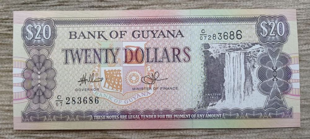 Werty71 Гайана 20 долларов 2018 UNC банкнота Корабль Водопад Кайетур
