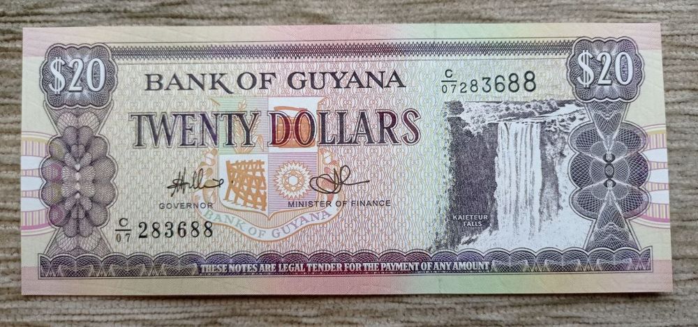 Werty71 Гайана 20 долларов 2018 UNC банкнота Корабль Водопад Кайетур