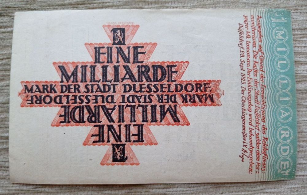 Werty71 ГЕРМАНИЯ 1 МИЛЛИАРД МАРОК 1923 банкнота 1000000000 ДЮССЕЛЬДОРФ