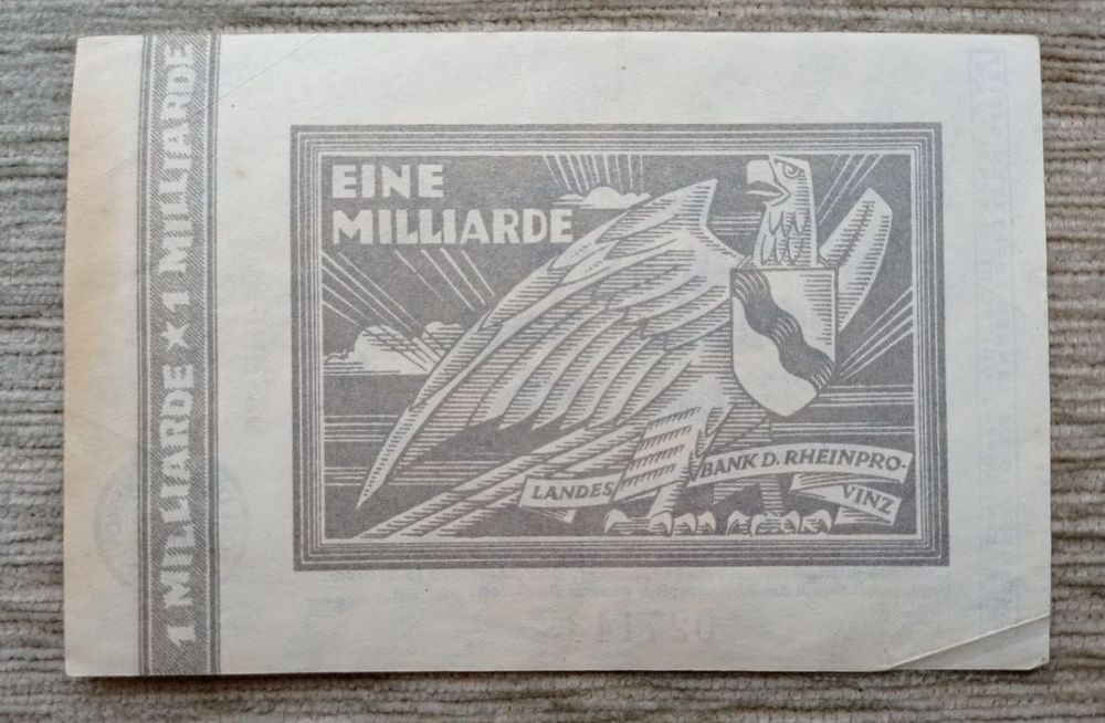 Werty71 ГЕРМАНИЯ 1 МИЛЛИАРД МАРОК 1923 банкнота 1000000000 Дюссельдорф