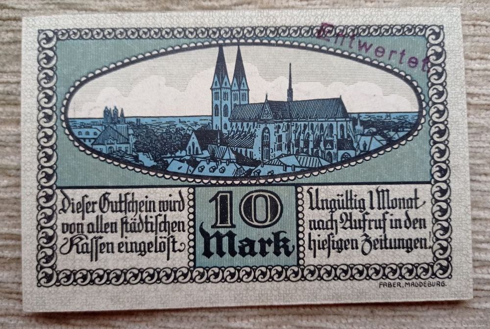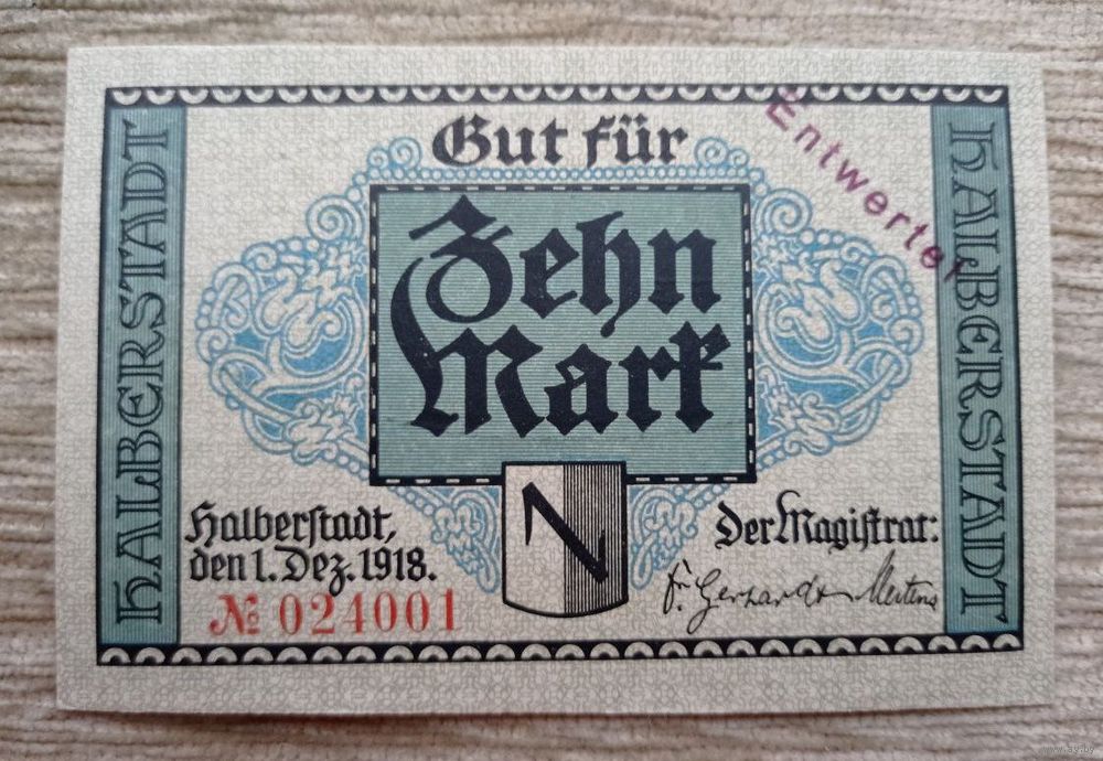 Werty71 Германия 10 марок 1918 аUNC банкнота Хальберштадт