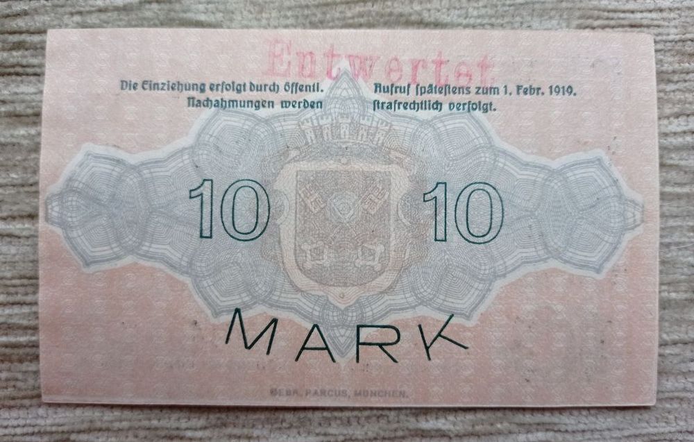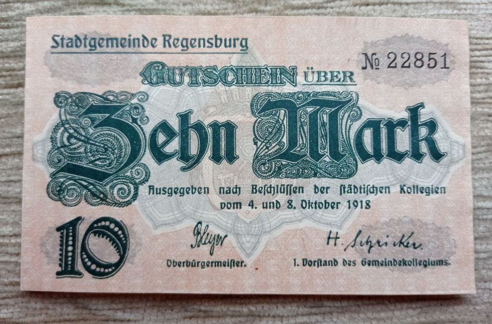 Werty71 Германия 10 марок 1918 аUNC банкнота Регесбург