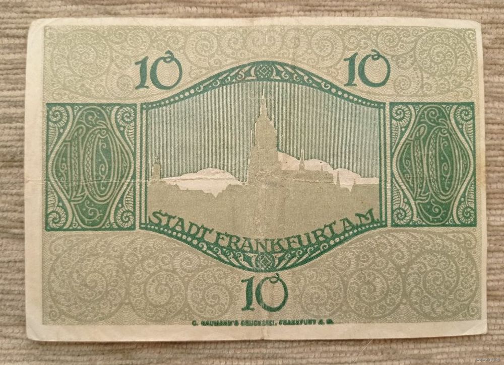 Werty71 Германия 10 марок 1918 банкнота Франкфурт