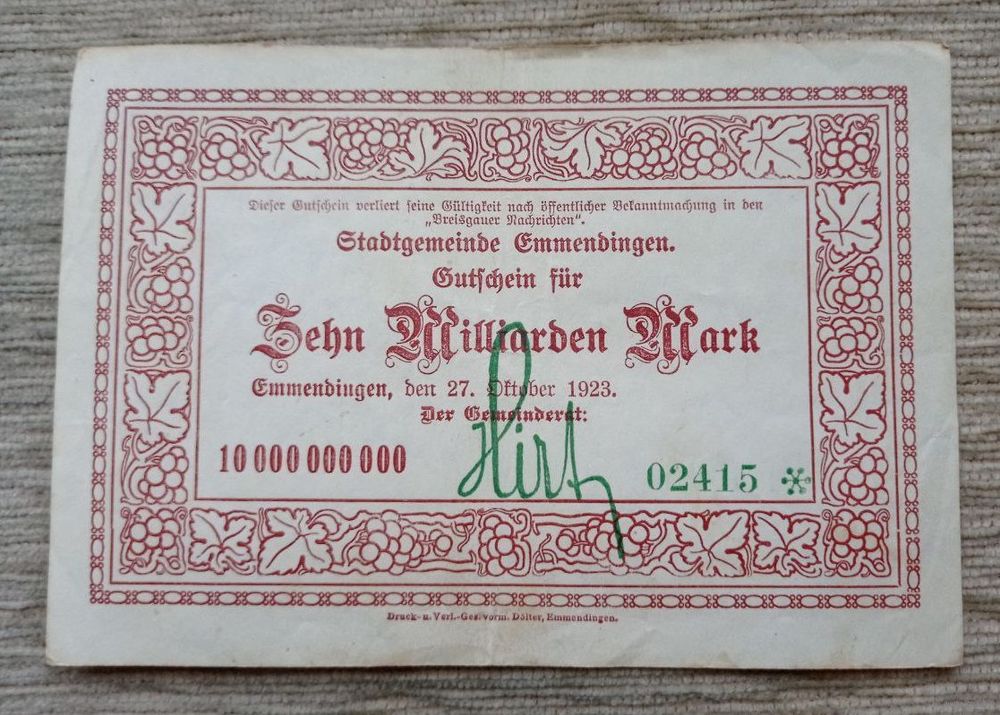 Werty71 Германия 10 миллиардов марок 1923 банкнота Эммендинген Фрайбург Баден