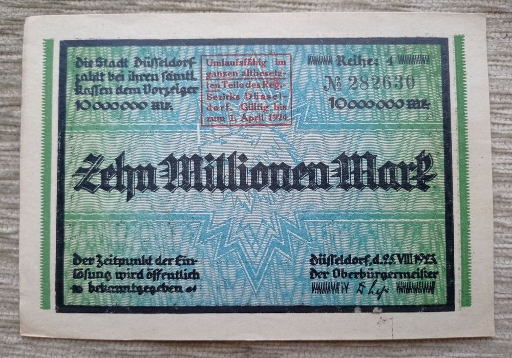 Werty71 Германия 10 миллионов 10000000 марок 1923 Дюссельдорф банкнота гроссгельд