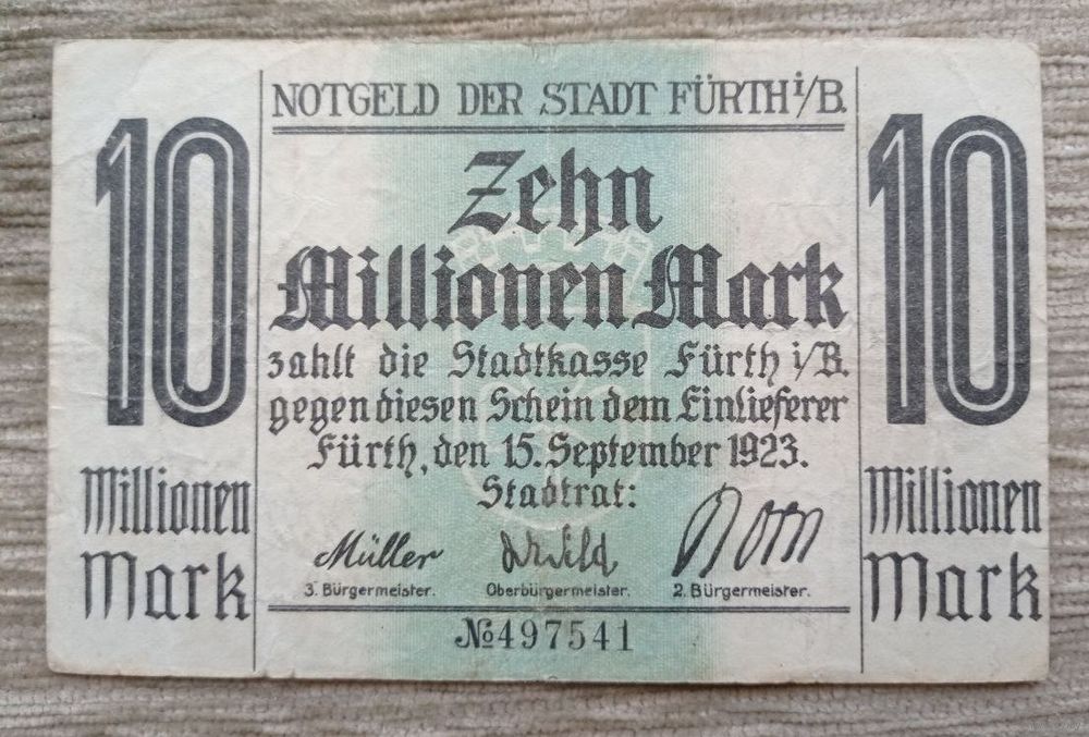 Werty71 Германия 10 миллионов 10000000 марок 1923 Фюрт банкнота гроссгельд