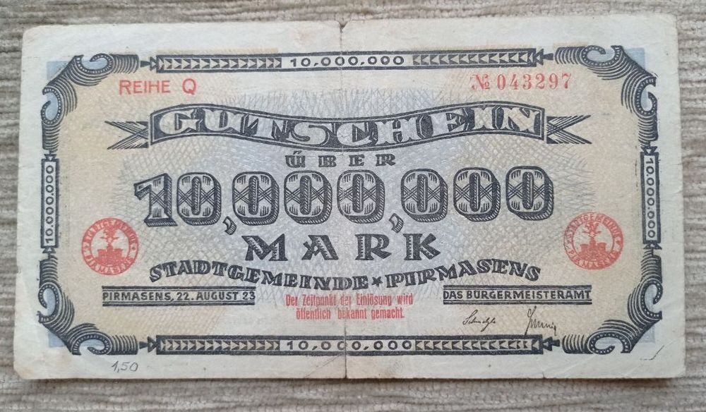 Werty71 Германия 10 миллионов 10000000 марок 1923 Пирмазенс банкнота гроссгельд