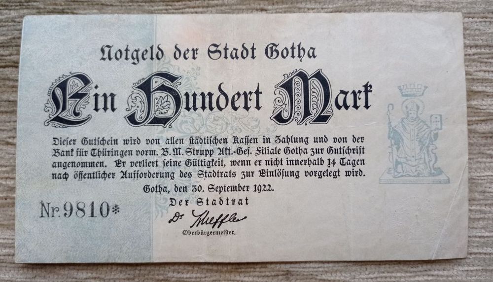 Werty71 Германия 100 марок 1922 банкнота Гроссгельд Гота 2 без цифры 100