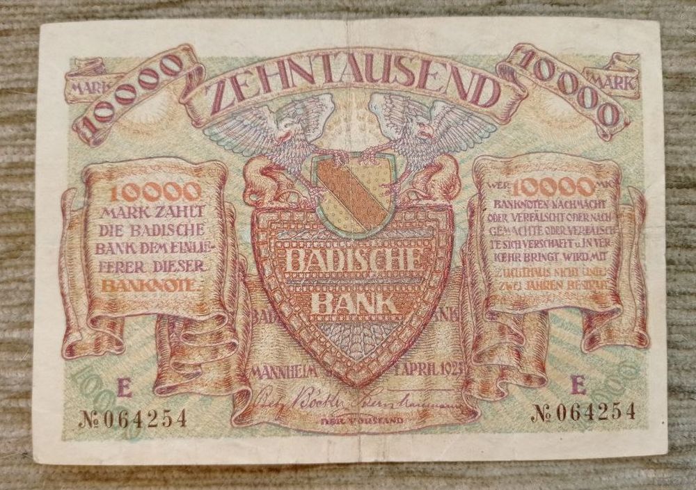 Werty71 Германия 10000 марок 1923 банкнота Гроссгельд Мангейм