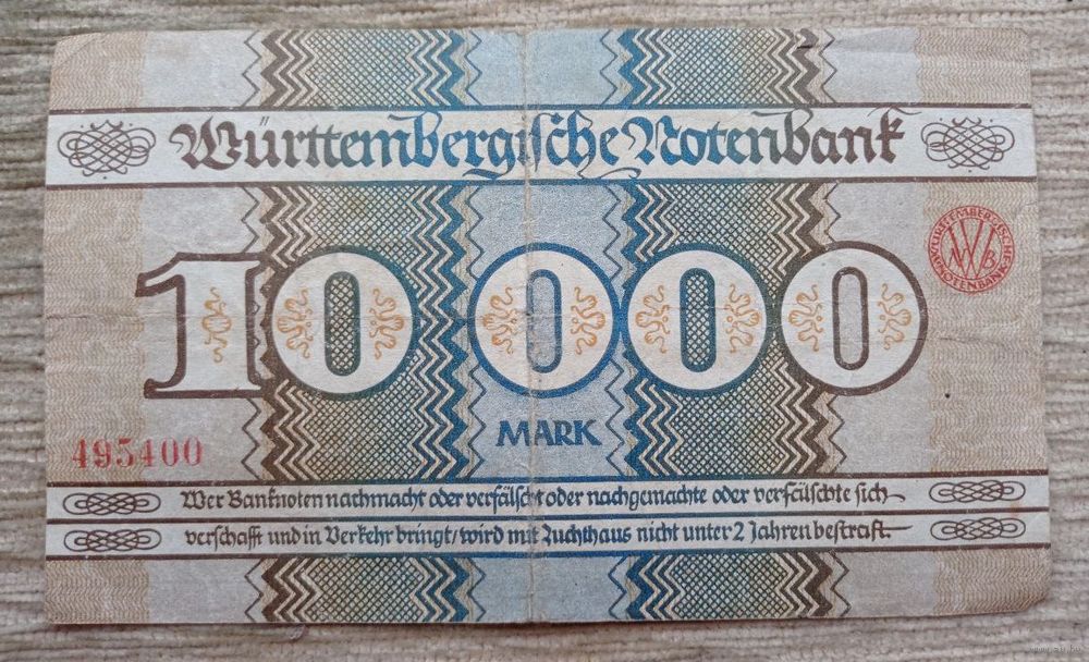 Werty71 Германия 10000 марок 1923 банкнота Гроссгельд Штутгарт