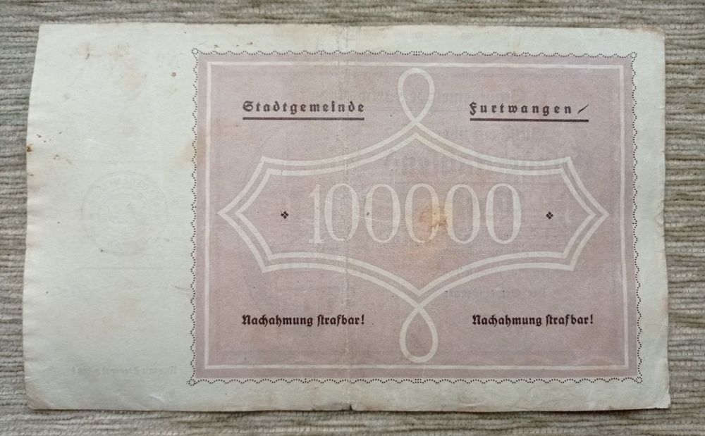 Werty71 Германия 100000 марок 1923 банкнота Гроссгельд Фуртванген Баден-Вюртемберг Большой формат