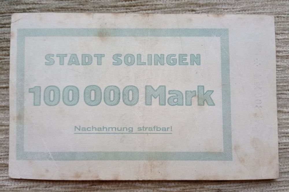 Werty71 Германия 100000 марок 1923 банкнота Гроссгельд Золинген Солинген