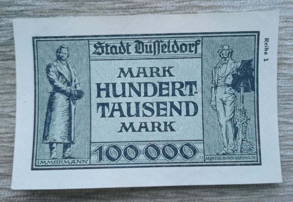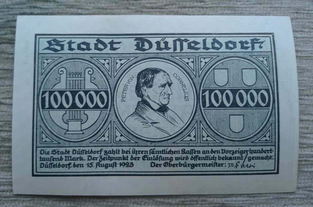 Werty71 Германия 100000 марок 1923 Дюссельдорф аUNC банкнота