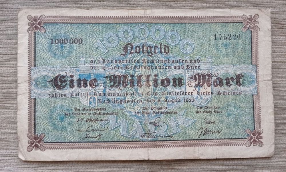 Werty71 Германия 1000000 марок 1923 банкнота 1 миллион Реклингхаузен Вестфалия IV Риссе