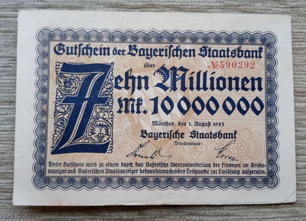 Werty71 Германия 10000000 марок 10 миллионов 1923 банкнота Гроссгельд Бавария