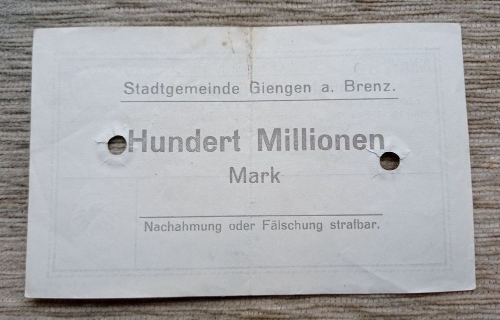 Werty71 Германия 100000000 марок 1923 100 миллионов Гинген-ан-дер-Бренц город в Баден-Вюртемберге гашение