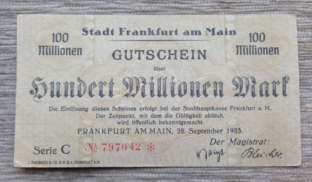 Werty71 Германия 100000000 марок 1923 банкнота Гроссгельд 100 миллионов Франкфурт-на-Майне