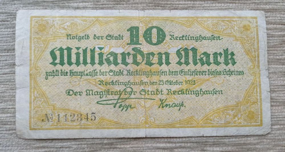 Werty71 Германия 10000000000 10 миллиардов марок 1923 Реклингхаузен Северный Рейн-Вестфалия банкнота