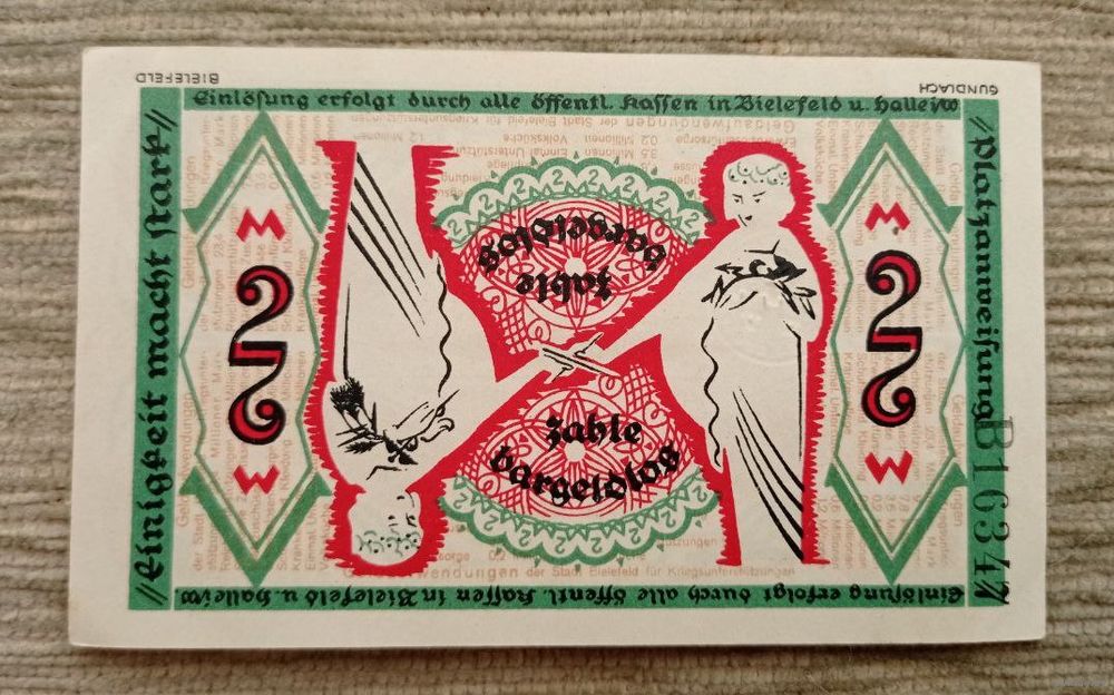 Werty71 Германия 2 марки 1918 банкнота Билефельд