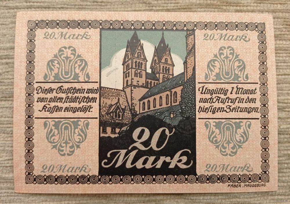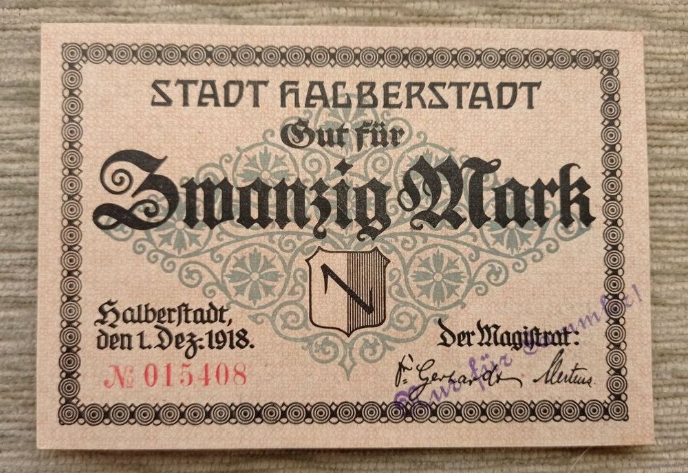 Werty71 Германия 20 марок 1918 аUNC банкнота Хальберштадт