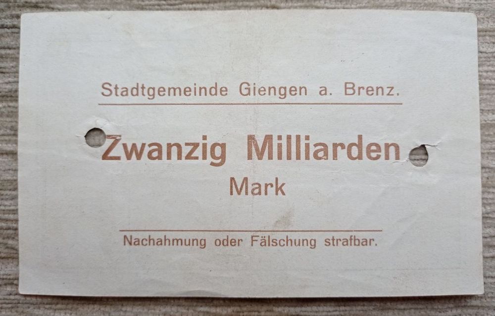 Werty71 Германия 20 миллиардов марок 1923 банкнота Гроссгельд Бренц Гашение