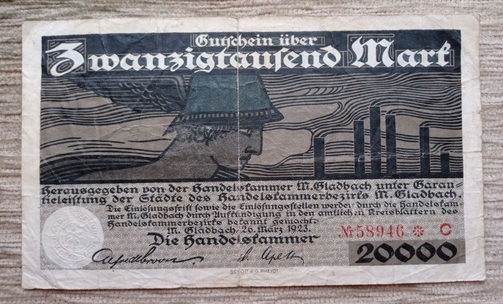 Werty71 Германия 20000 марок 1923 банкнота Гроссгельд Гладбах Рейнланд