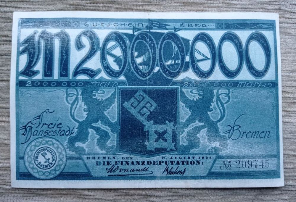 Werty71 Германия 2000000 марок 1923 банкнота Бремен 2 миллиона