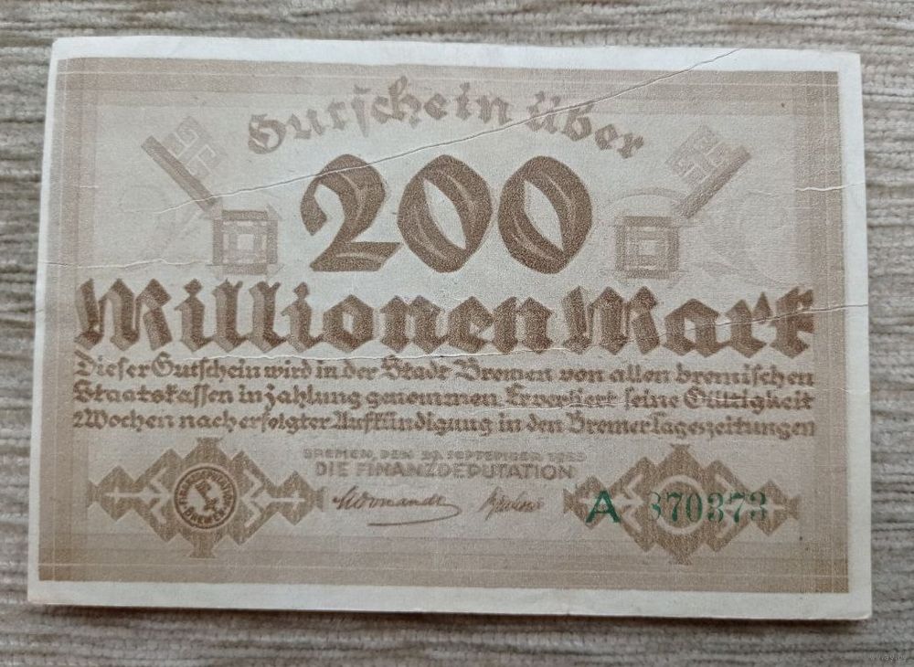 Werty71 Германия 200000000 марок 1923 200 миллионов банкнота Бремен