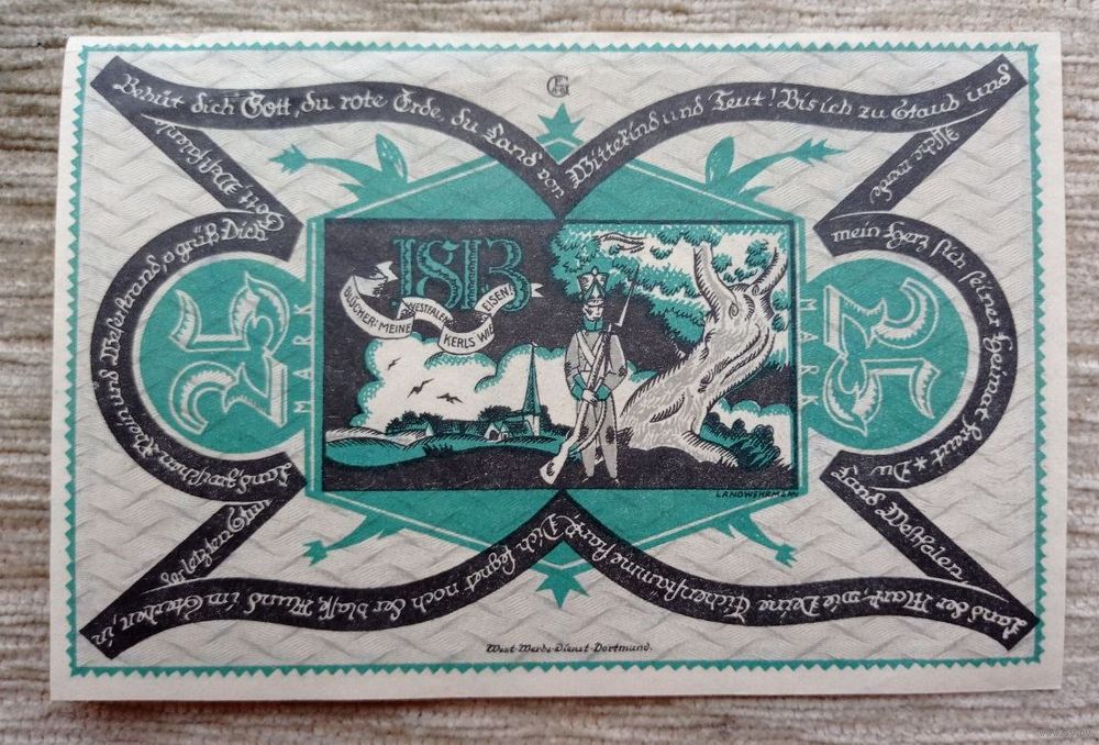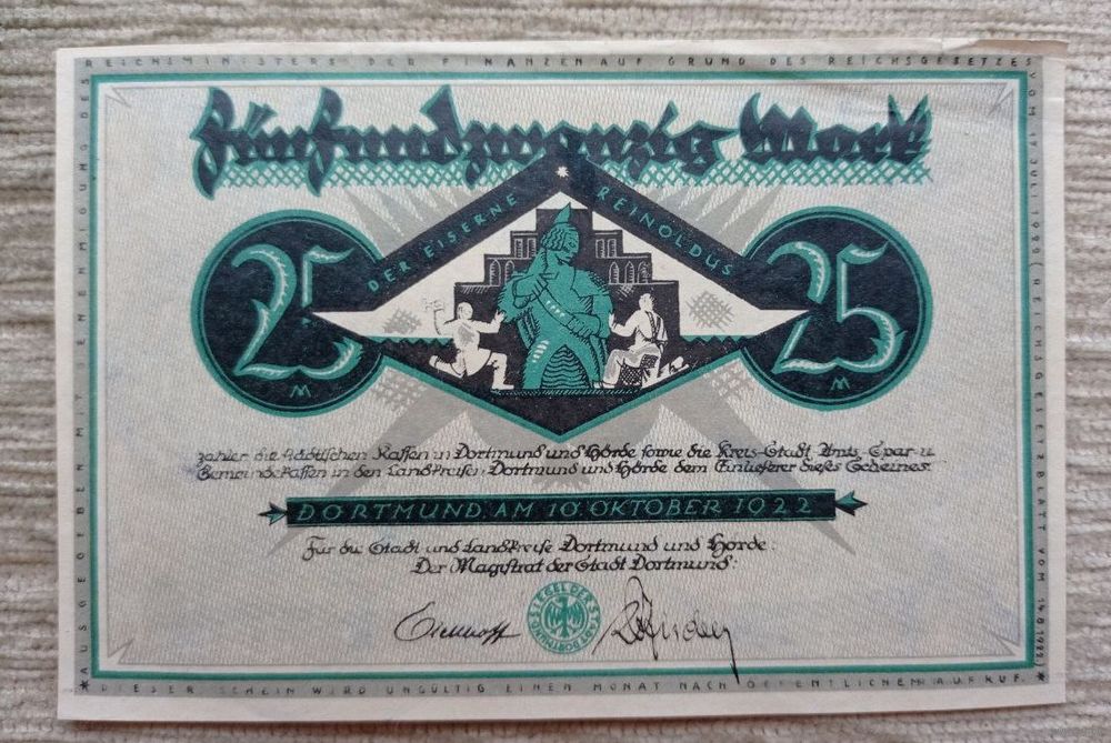 Werty71 Германия 25 марок 1918 банкнота Гроссгельд Дортмунд зелёная