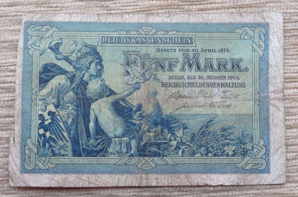 Werty71 Германия 5 марок 1904 банкнота Дракон
