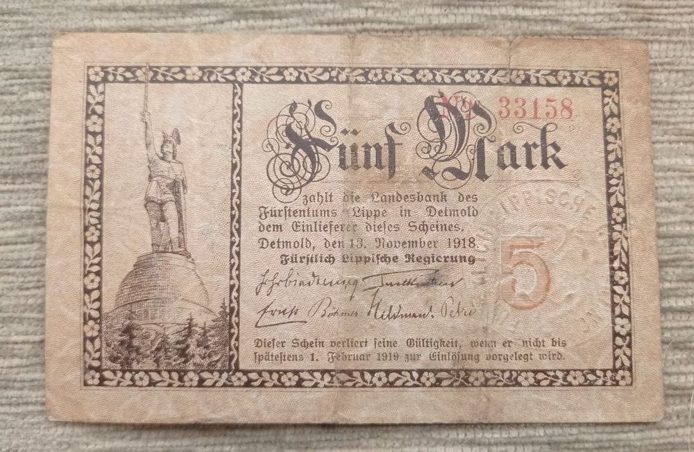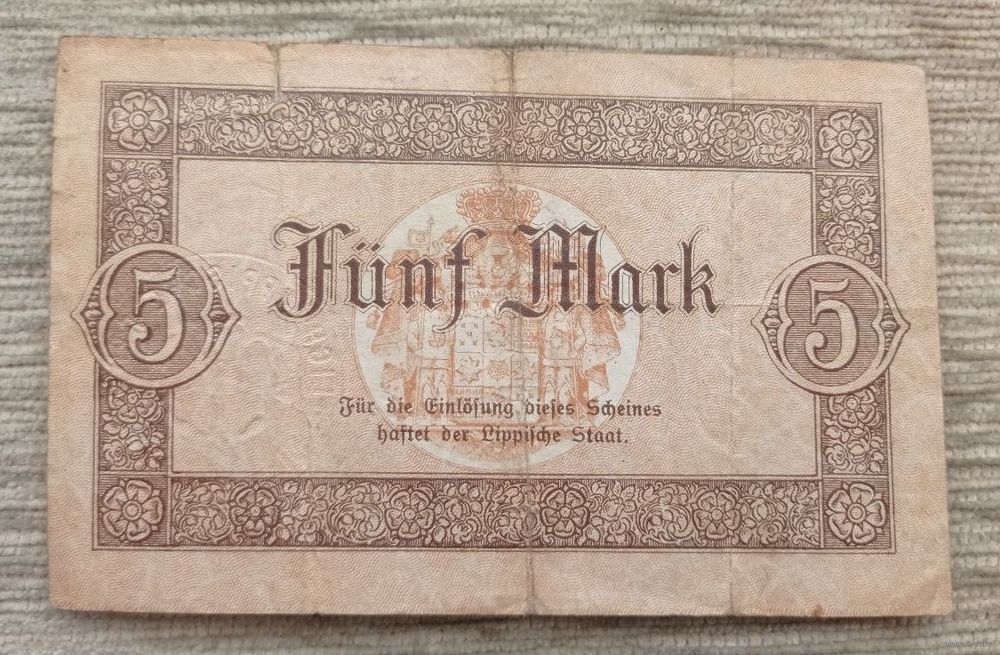 Werty71 Германия 5 марок 1918 банкнота Детмольд