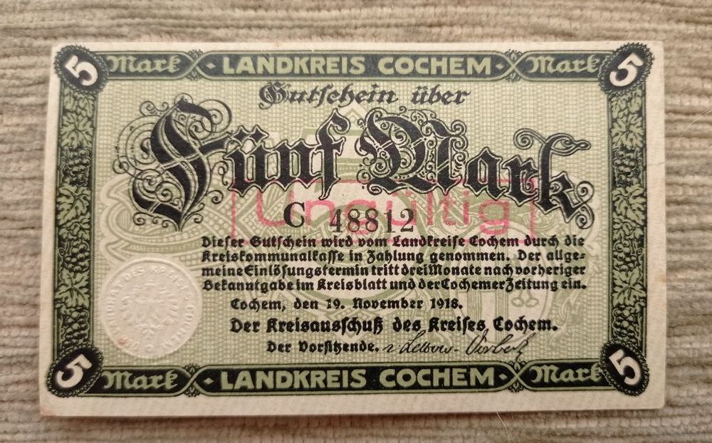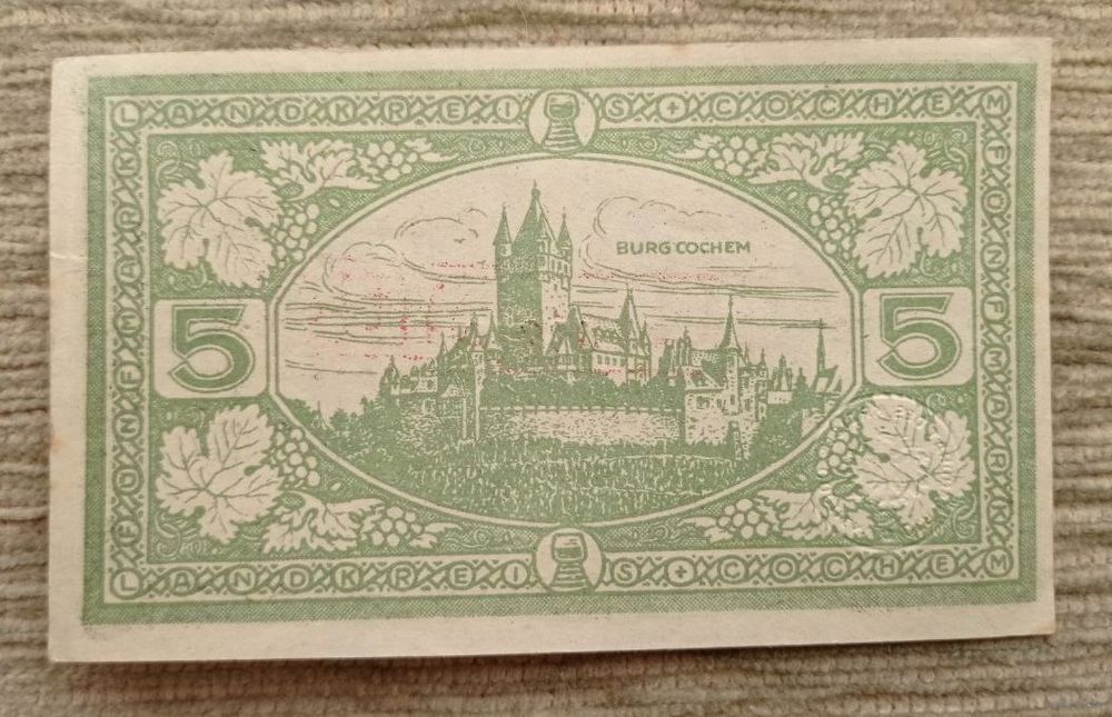 Werty71 Германия 5 марок 1918 банкнота Кохем