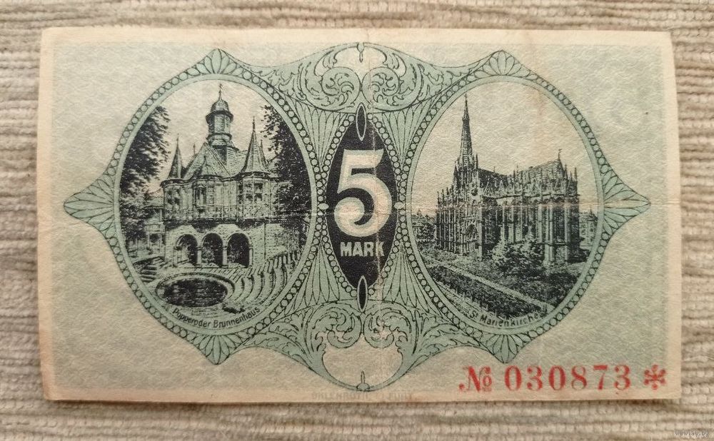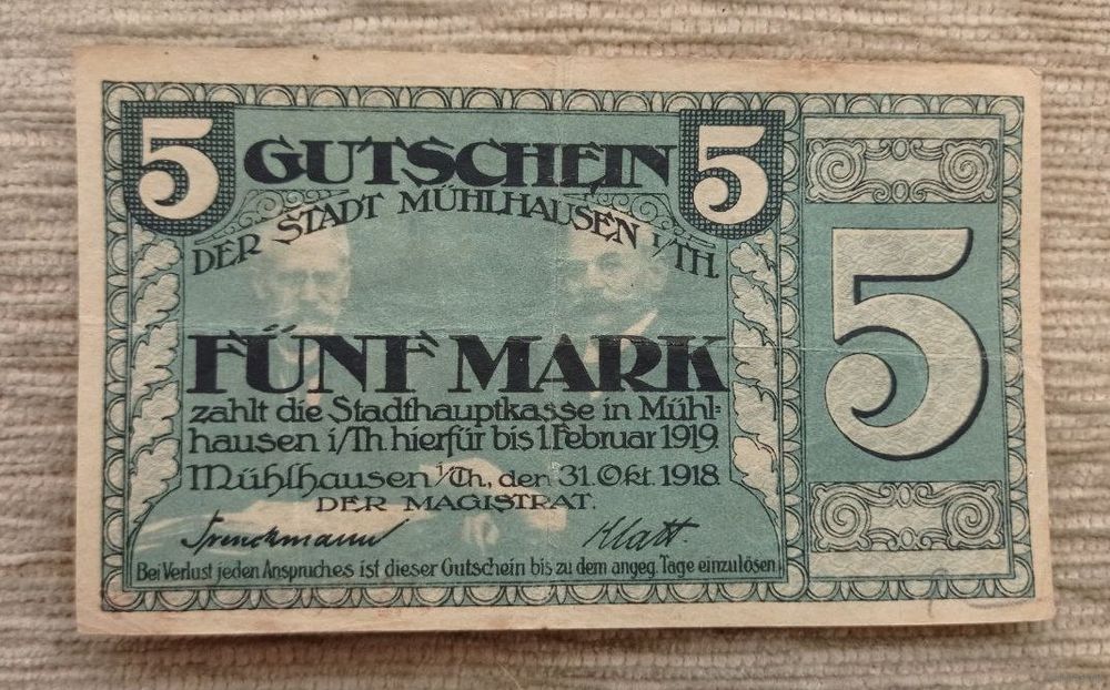 Werty71 Германия 5 марок 1918 банкнота Мюльхаузен