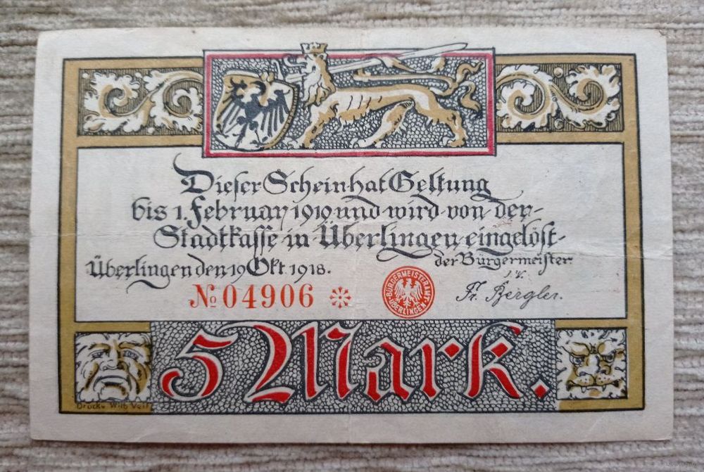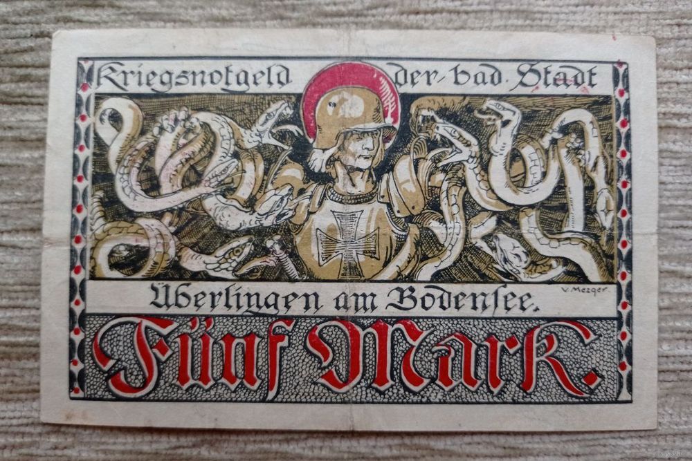 Werty71 Германия 5 марок 1918 банкнота Юберлинген