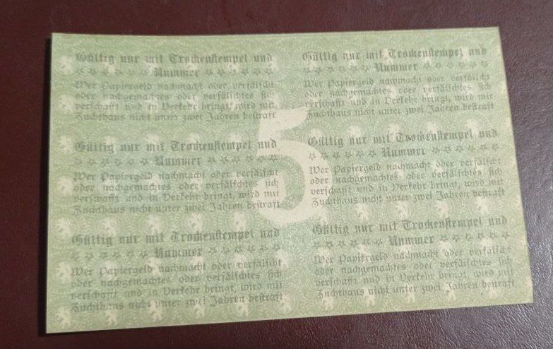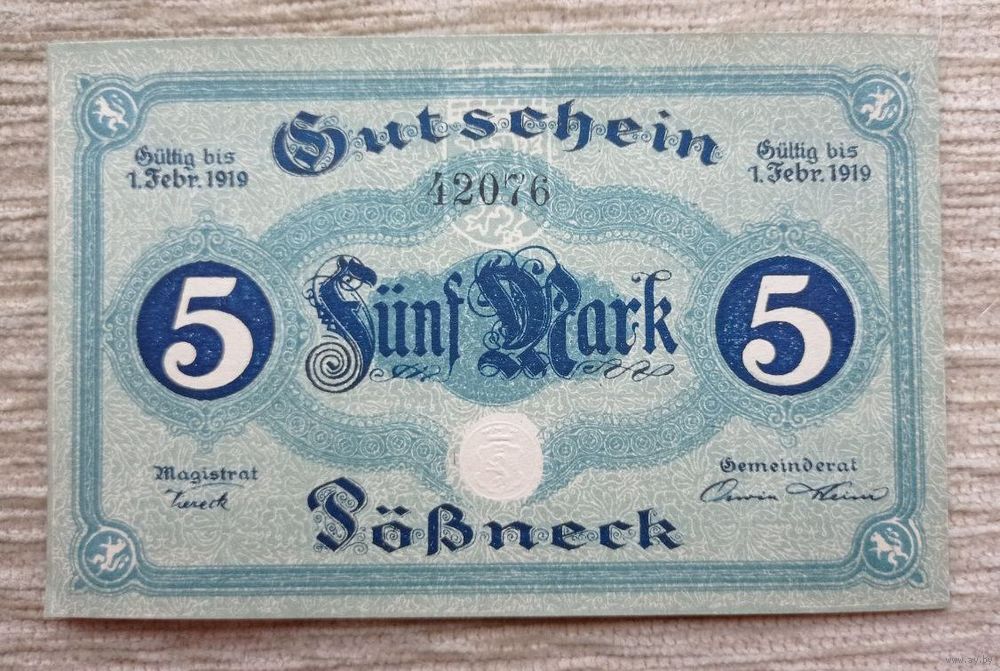 Werty71 Германия 5 марок 1919 аUNC банкнота Пёснек Песнек