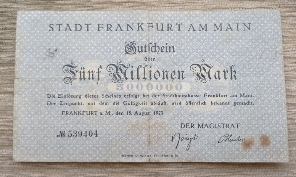 Werty71 Германия 5 миллионов 5000000 марок 1923 Франкфурт на Майне 5 000 000 банкнота гроссгельд