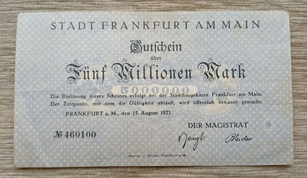 Werty71 Германия 5 миллионов 5000000 марок 1923 Франкфурт на Майне 5 000 000 банкнота гроссгельд