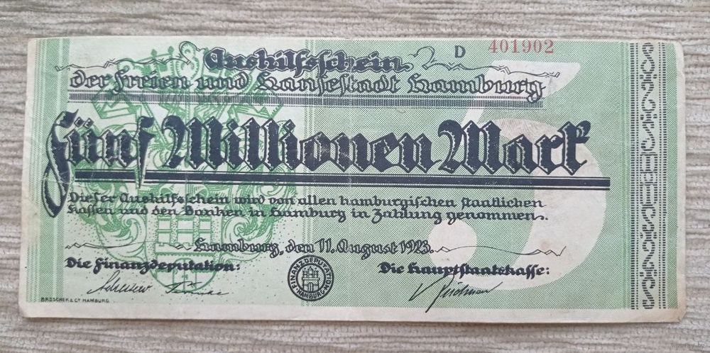 Werty71 Германия 5 миллионов 5000000 марок 1923 Гамбург 5 000 000 банкнота гроссгельд