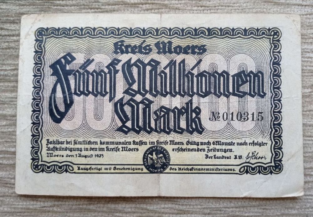 Werty71 Германия 5 миллионов 5000000 марок 1923 Мёрс Моерс 5 000 000 банкнота гроссгельд