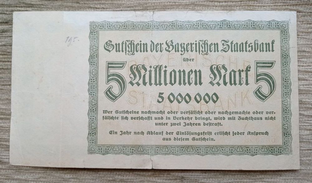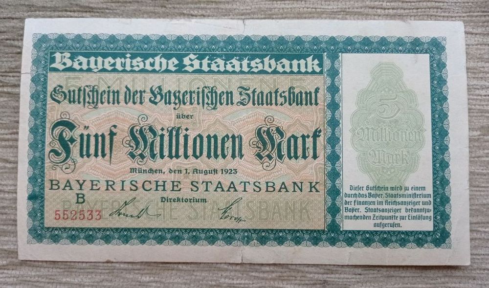 Werty71 Германия 5 миллионов 5000000 марок 1923 Мюнхен 5 000 000 банкнота гроссгельд