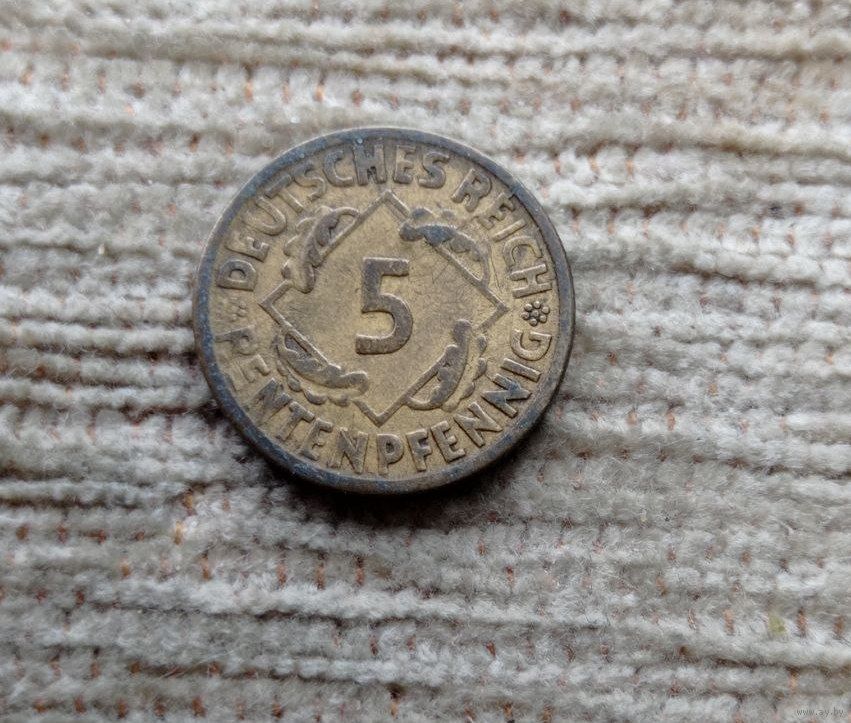 Werty71 Германия 5 рентенпфеннигов 1924 А пфеннигов Веймар