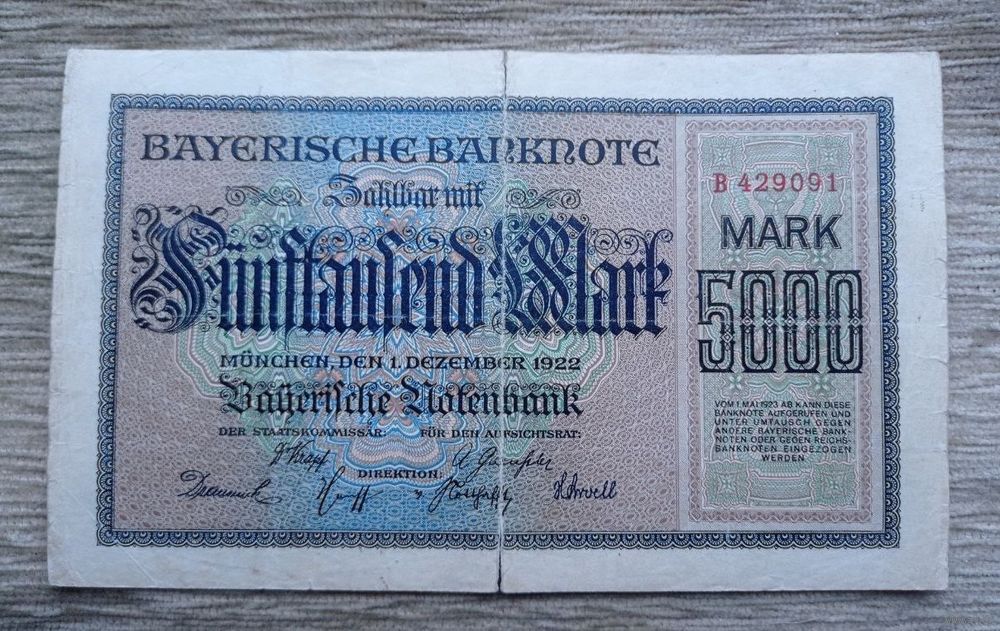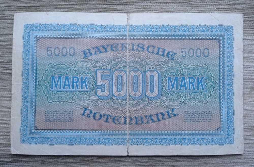 Werty71 Германия 5000 марок 1922 банкнота Мюнхен большой формат