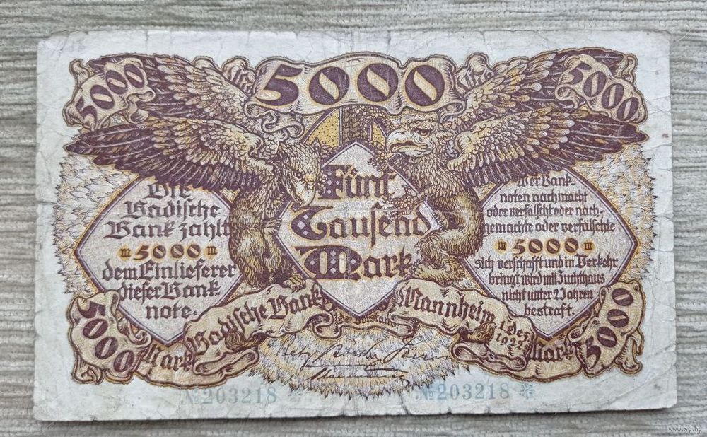 Werty71 Германия 5000 марок 1922 имперский банк Мангейм банкнота гроссгельд
