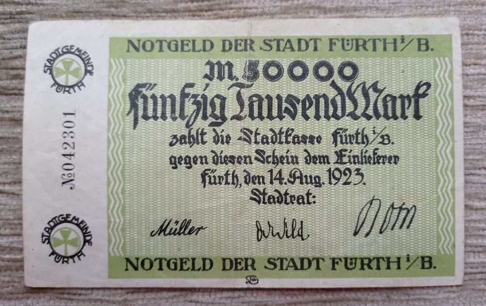 Werty71 Германия 50000 марок 1923 банкнота Гроссгельд Фюрт