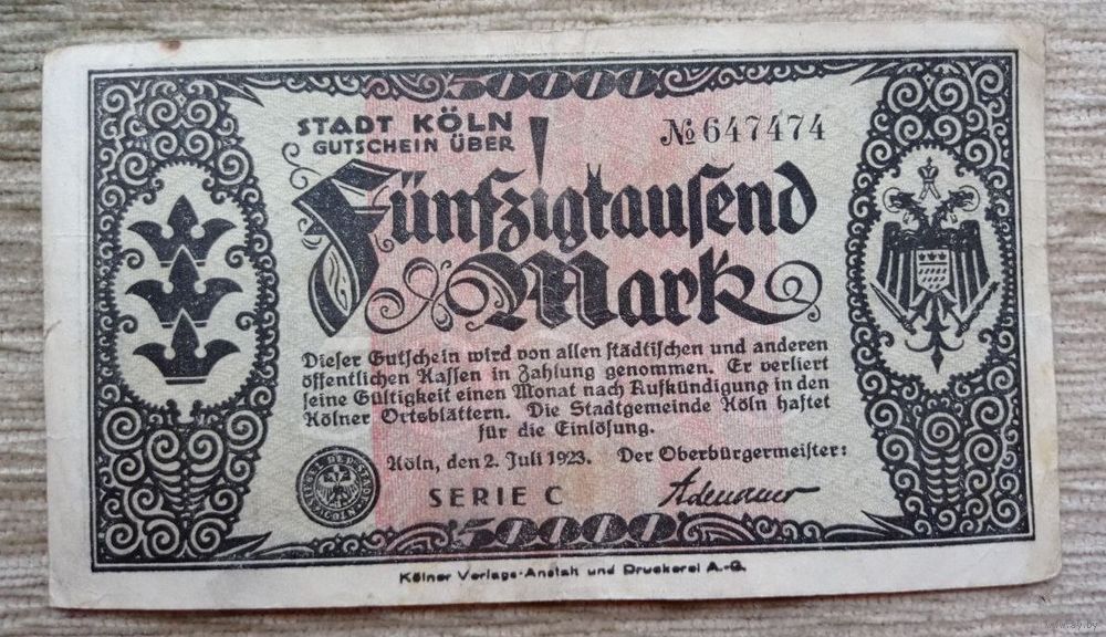 Werty71 Германия 50000 марок 1923 банкнота Гроссгельд Кёльн