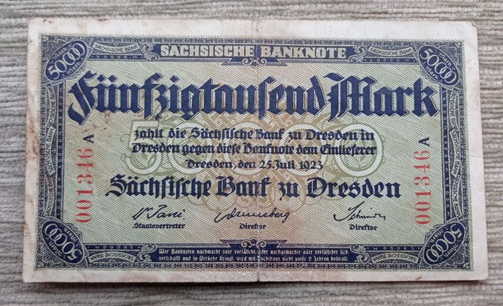 Werty71 Германия 50000 марок 1923 банкнота Саксонский банк в Дрездене