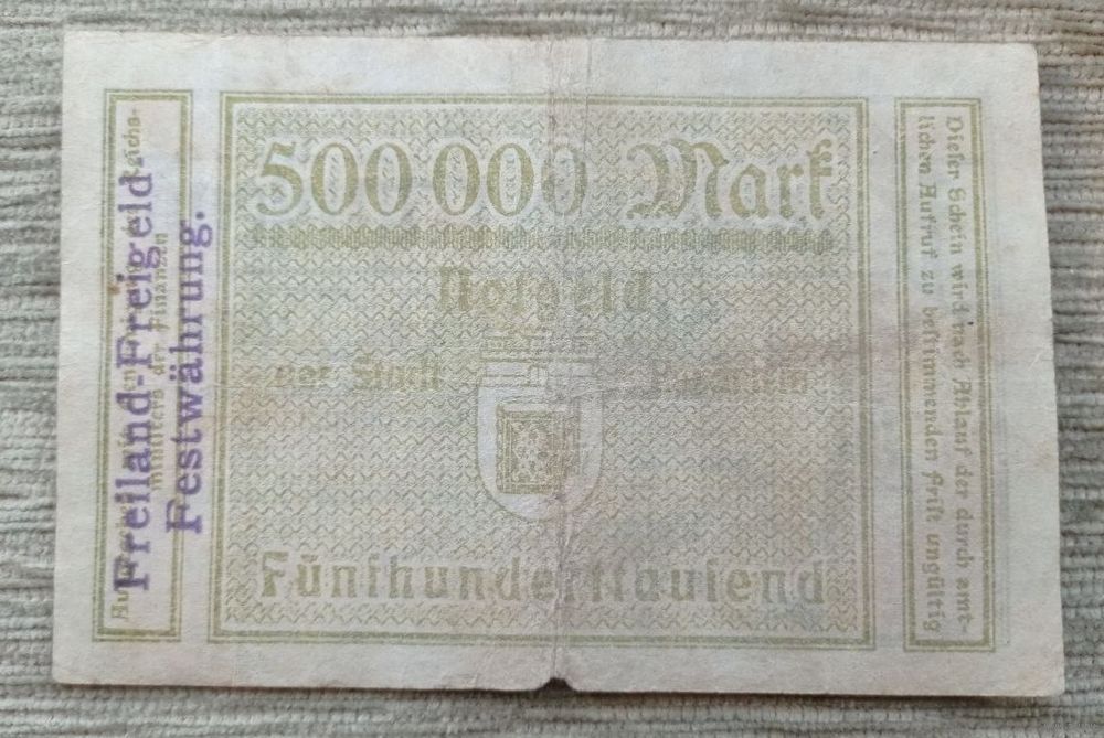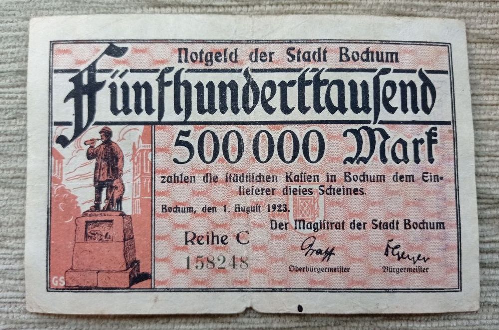 Werty71 Германия 500000 марок 1923 банкнота Гроссгельд Бохум Надпечатка Пастух
