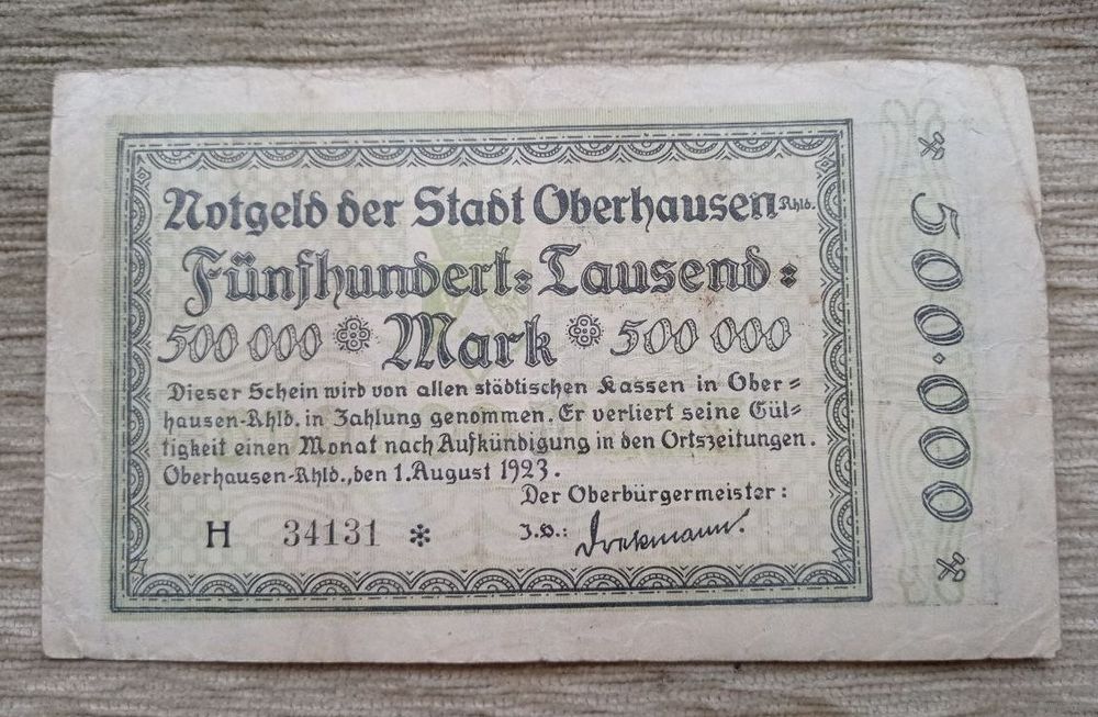 Werty71 Германия 500000 марок 1923 банкнота Гроссгельд Оберхаузен