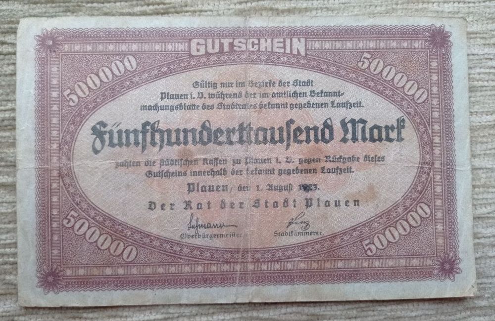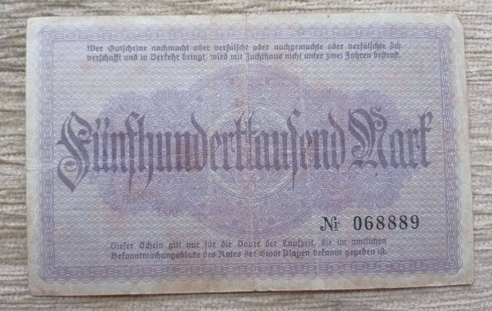 Werty71 Германия 500000 марок 1923 банкнота Гроссгельд Плауэн