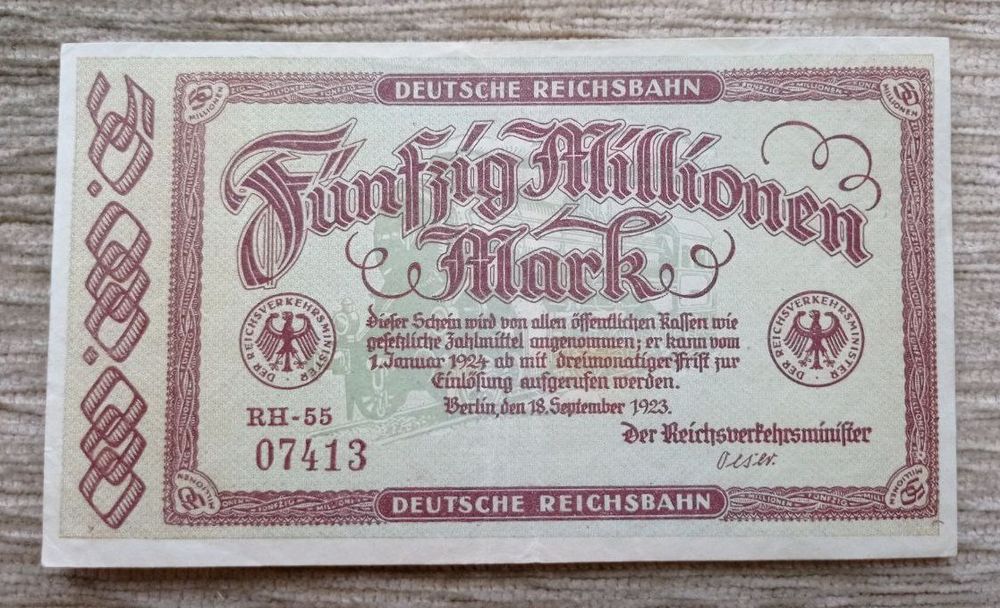 Werty71 Германия 50000000 марок 1923 50 миллионов банкнота Берлин Железная дорога